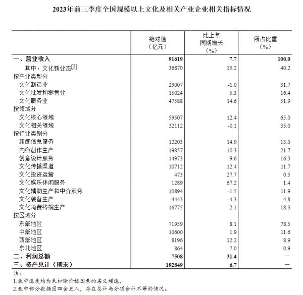 原标题:国家统计局:2023年前三季度全国规上文化及相关产业企业营业收入增长7.7%