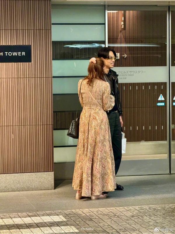 #日本街头偶遇林志玲Akira# 网友在日本街头偶遇林志玲Akira,林志玲长款连衣裙看起来很休闲惬意,老公Akira也很有气质。