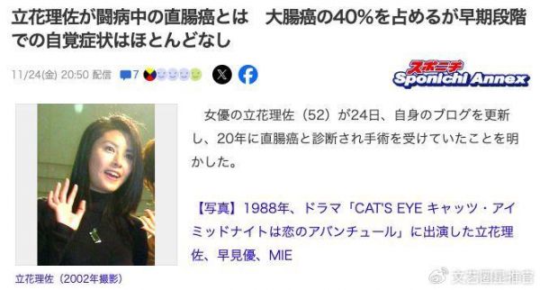 11月24日,立花理佐勇敢地分享了自己的生命历程,让人深感震撼。这位享有盛誉的52岁日本女星透露,在2020年,她接受了直腸癌的诊断,这也是她为什么在过去的几年里接受了一系列艰难的手术,包括摘除了肠道、子宮、卵巢以及私处等多个器官。