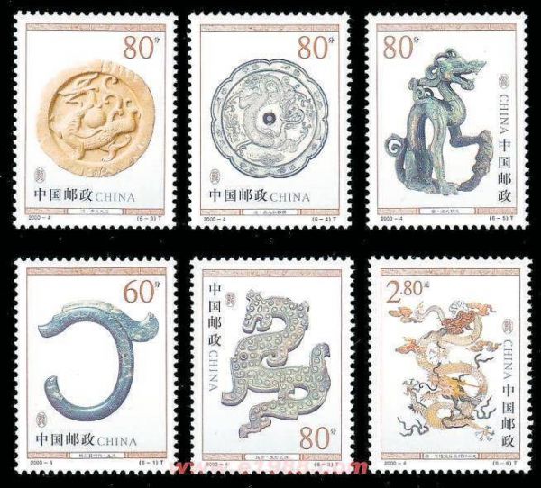 经过碳14测定,红山文化出现的时间,大致是公元前4000至前3000年,也就是我国传说中的三皇五帝时代。此后,便是夏商周。而邮票中“龙”的形象得以呈现,要归功于对商代后期殷墟文物的发掘与整理。