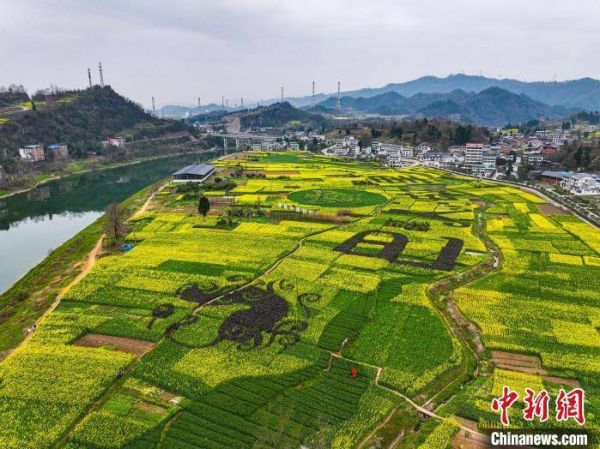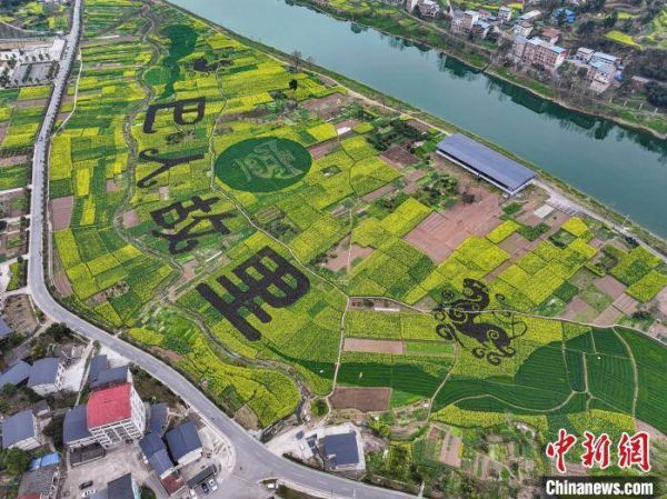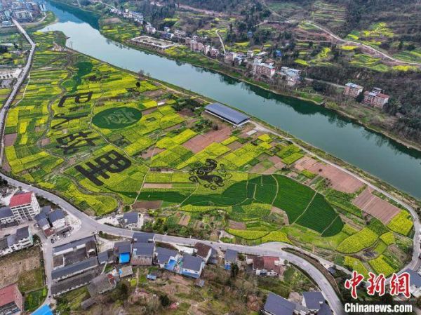 原标题:四川达州宣汉:油菜花拼出“巴人故里”图案