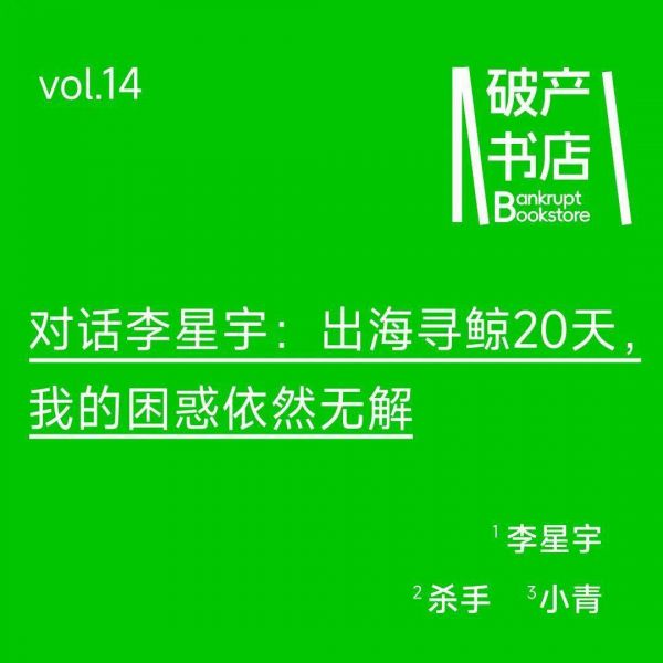 本期「破产书店」,出海寻鲸 20 天的李星宇带来了他的书单,分享了他的航海故事:12人帆船小队的艰难开局、收录到的神秘鲸语、一只受过伤却始终盘旋在船边的鲸鱼。他相信这个世界上有着很多人类无法解释的事情,也相信这宇宙中存在可以跨越任何时间和空间的联结。“那一刻我知道,它感受到了,我也感受到了。”