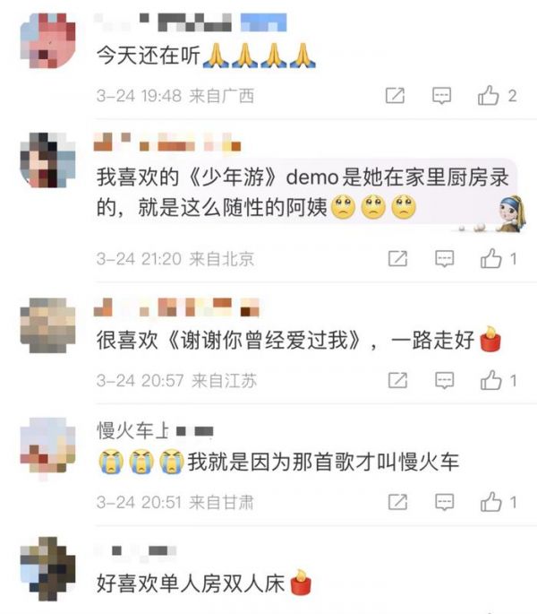 张惠妹随后也伤心表示:“非常惊讶,非常难过,祈祷化为天使的她就像她的旋律一样,自在飞翔。”