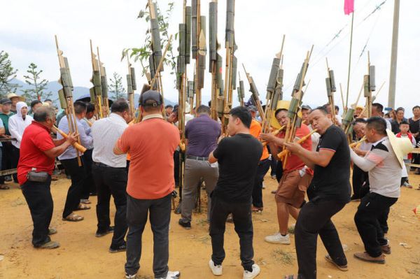 5月11日,位于桂黔边界的融水苗族自治县大年乡林浪村举行“禾稻育秧”芦笙比响活动。来自贵州从江,以及广西三江、融水等地的80多支芦笙参加比赛。