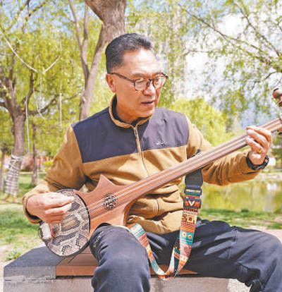 不一会儿,布尼玛放下乐器,洛桑开始独自演奏。“弹这一曲的时候手指要放这边……”布尼玛耐心地给洛桑讲解着。师徒俩弹奏的这种乐器叫扎念琴,意为“悦耳动听之声”,是西藏历史悠久的弹拨乐器。2014年,扎念琴制作技艺入选第四批国家级非物质文化遗产代表性项目名录。