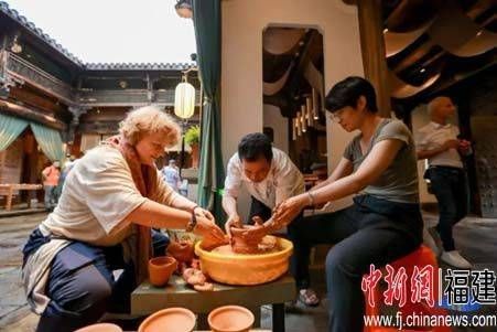 在三坊七巷的古老街巷中,汉学家们仿佛穿越到了“半部中国近代史”的现场。他们驻足于古雅的水榭戏台前,观看闽剧表演,与演员们热情互动,感受来自福建的“华流”魅力。此外,他们还参观了林觉民、冰心故居和严复故居等地,倾听名人典故,感受非遗魅力。