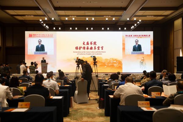 国内外文庙书院管理者、专家学者等先后发言。曲阜市副市长储艳丽介绍了“孔庙、孔林和孔府”列入世界文化遗产30年来的保护情况。与会人员深入交流,形成了《文庙书院保护传承曲阜宣言》,并由中国孔庙保护协会会长、曲阜市文物局局长孔德民宣读发布。