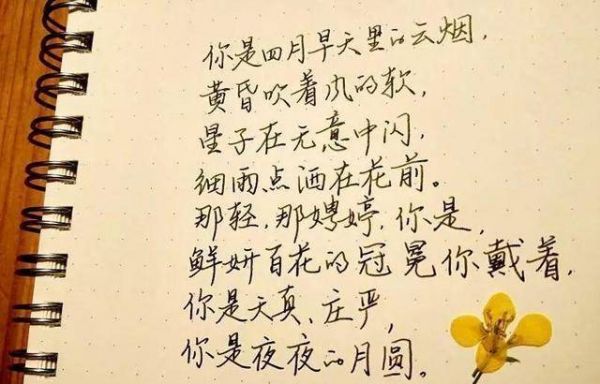 “轻灵,在春的光焰中交舞着变换。你是四月早天里的云烟。黄昏吹着风的软,星子在无意中闪,细雨点洒在花前。”