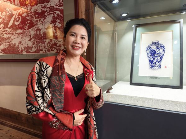 “这组青花瓷剪纸作品,我就是借鉴了外国的装裱手法,让作品更有透光感和立体感。”高少萍介绍说。