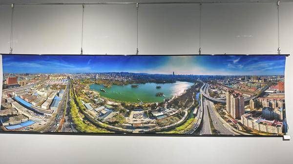 掌握和熟练地运用独特的摄影技法,王鲁新开创了一个新的摄影流派——无人机全景画意摄影流派。他一个人、一辆车、一台单反、一架无人机、一架穿越机,走完了全省16市,用单反拍摄各地市有代表性的景观,以无人机拍摄照片和视频,穿越机拍摄高速视频。“穿越机是近两年新兴的摄影器材,主要用于拍摄视频,飞行速度快,操作难度很大,可以有效增加视觉冲击,需要丰富的无人机驾驶经验。本次展览延续了之前两次个展的部分手法,增加了许多新的创意。”王鲁新介绍,这次工作量更大,每幅作品都经过了很多道工序。展览现场不仅有以穿越机为主拍摄的视频,每个地市都有至少一张360全景和一张VR全景。之后,其他作品将与展出作品一起整理为画册,每一幅作品都是由30多张小照片拼接而成,360全景长度全部都在3米以上。他将作品全部承载到油画布上,能够带来震撼的油画般摄影效果的视觉冲击。