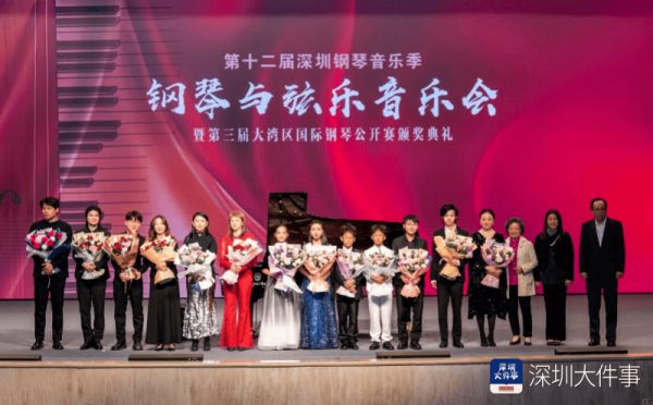 当晚,第三届大湾区国际钢琴公开赛颁奖典礼举行,获奖选手依次登台领奖。据了解,大湾区国际钢琴公开比赛于2019年创办,旨在进一步推动深圳“钢琴之城”建设,丰富“音乐工程”建设内涵,加强和推进粤港澳大湾区文化产业交流与合作,着力打造属于大湾区特有的国际钢琴赛事。