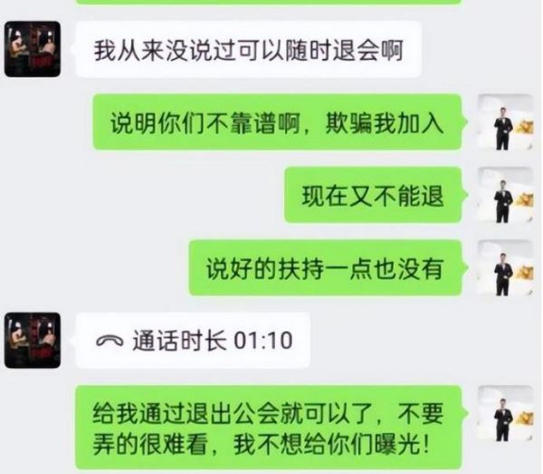 旗下这位女主播称被欺骗,并且晒出了和管理层的聊天记录,记录中显示他们先表示会流量扶持,并且承诺随时可以退出,但是签约之后就翻脸了。
