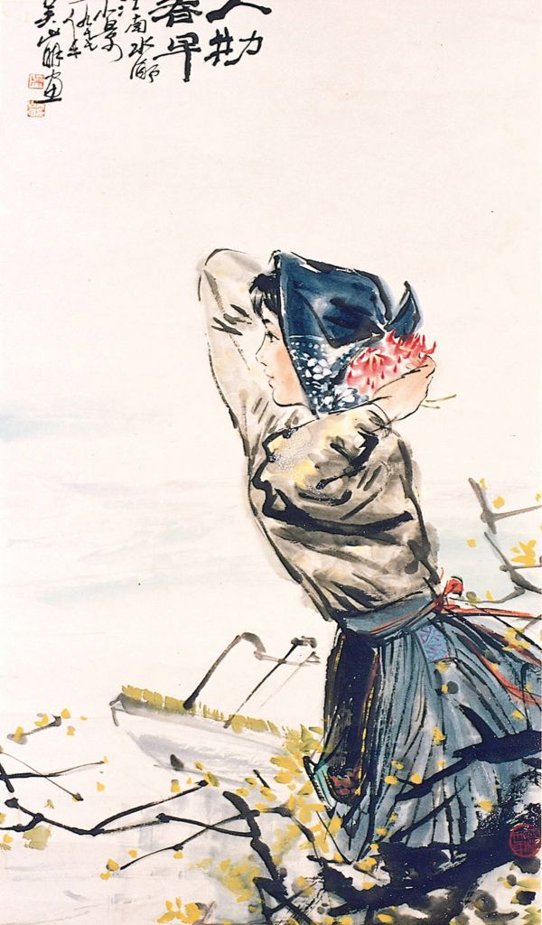 人勤春早(国画) 90×48厘米 1977年 吴山明
