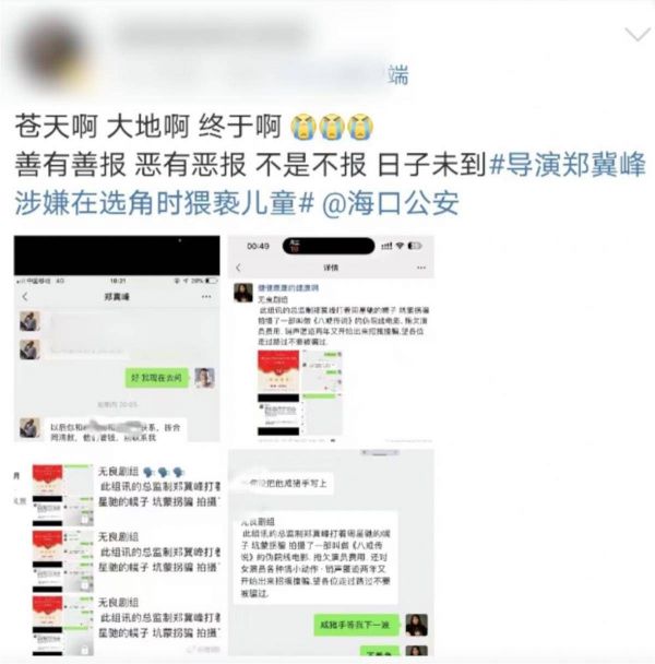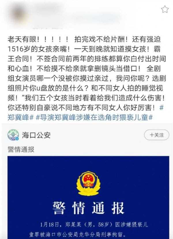 警方通报!导演郑某峰涉嫌猥亵儿童罪被刑拘,案件正在进一步侦办中