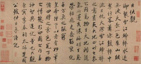 蔡京行书跋(传)赵佶雪江归棹图卷,耶鲁大学艺术博物馆藏。