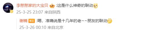 另外谢楠还在评论区透露,与陆虎已经是十几年的老朋友。当网友喊话希望吴京可以和陆虎合作时,谢楠则透露,陆虎为自己的综艺节目《半熟恋人》写的歌非常好听。