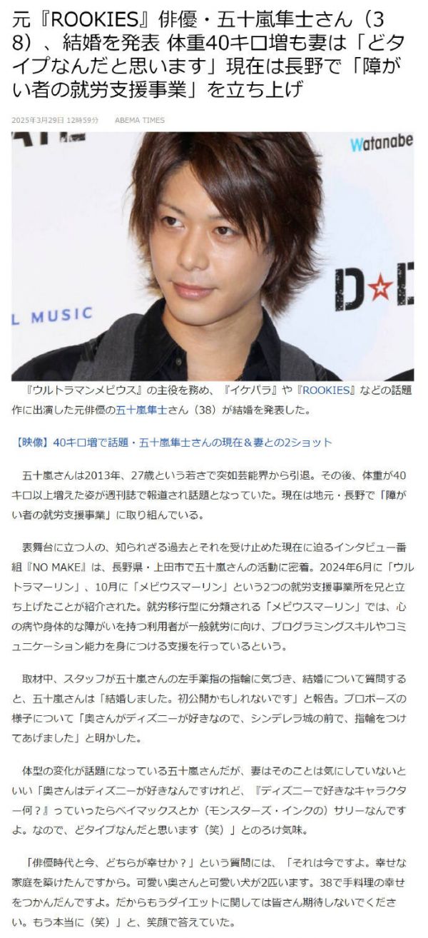 网址: 38岁五十岚隼士宣布结婚!曾主演《梦比优斯·奥特曼》 http://m.shhpp.com/newsview307479.html