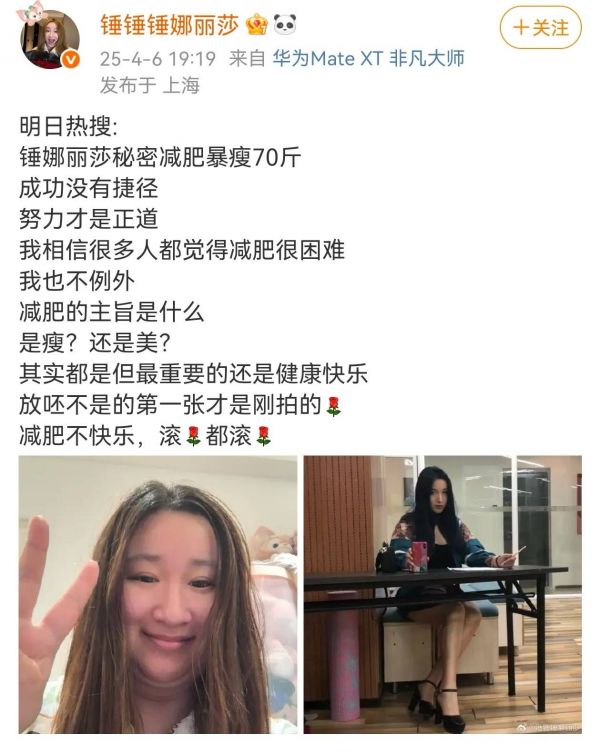 网红锤娜丽莎发文谈减肥心态 直言还是健康快乐