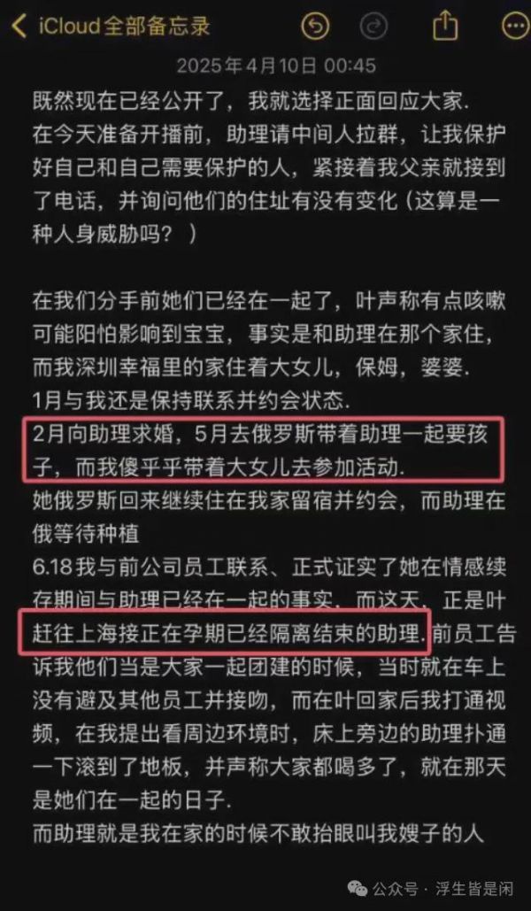 文中直指叶海洋“出轨女助理”“跨国代孕流水线”“伪造单身人设”三大罪状,甚至抛出惊人结论:“四个孩子中,只有大女儿是叶海洋亲生,其他三个生母成谜!”
