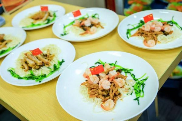 活动以“同祝、同书、同唱、同做、同吃”五大仪式串联全场。浦东各界道德模范、身边好人、城市建设者及市民代表齐聚,以“科技腾飞揽星月”“四海宾朋共庆贺”等诗句抒发爱国情;参与者在心愿卡写下 “愿祖国永葆青春”等祝福;少儿艺术团领唱《今天是你的生日》,全场挥动国旗汇成红色浪潮。“同做”环节尤为亮眼,市民用番茄酱绘五角星、蔬菜拼出“76”字样,打造“国旗面”“生日面”特色浇头。众人共品手作面条时,“家国同庆”氛围推向高潮。