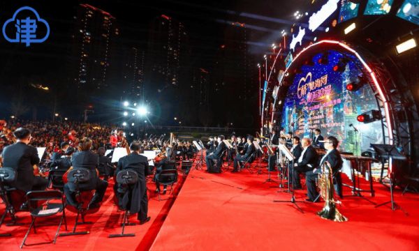 演出在管弦乐《江山如画》的壮丽旋律中拉开帷幕,恢弘的乐声与海河波光交相辉映。随后,《茉莉花》《海霞组曲》《渔舟唱晚》等经典作品轮番奏响,既有展现中国山河壮美的民族风情,也有《美丽的梭罗河》《白色郁金香》《卡林卡》等异域经典,传递出开放包容的文化交融之美。指挥家易娟子带领乐团以细腻的层次感和饱满的情感,将每首曲目赋予画面感,观众仿佛置身于光影交织的艺术长廊。