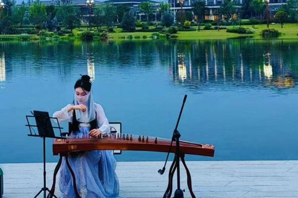 成都街头的民乐表演。新华社发