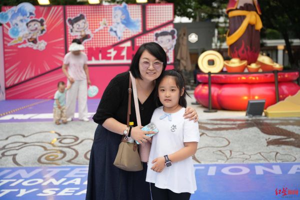 来自河南开封的游客卢怡告诉记者,这次国庆假期,她和孩子专程来成都游玩。“白天刚去了熊猫基地和三星堆,傍晚就赶来交子大道逛潮玩大街,孩子特别喜欢哪吒和敖丙,说什么都要来现场拍照打卡。”