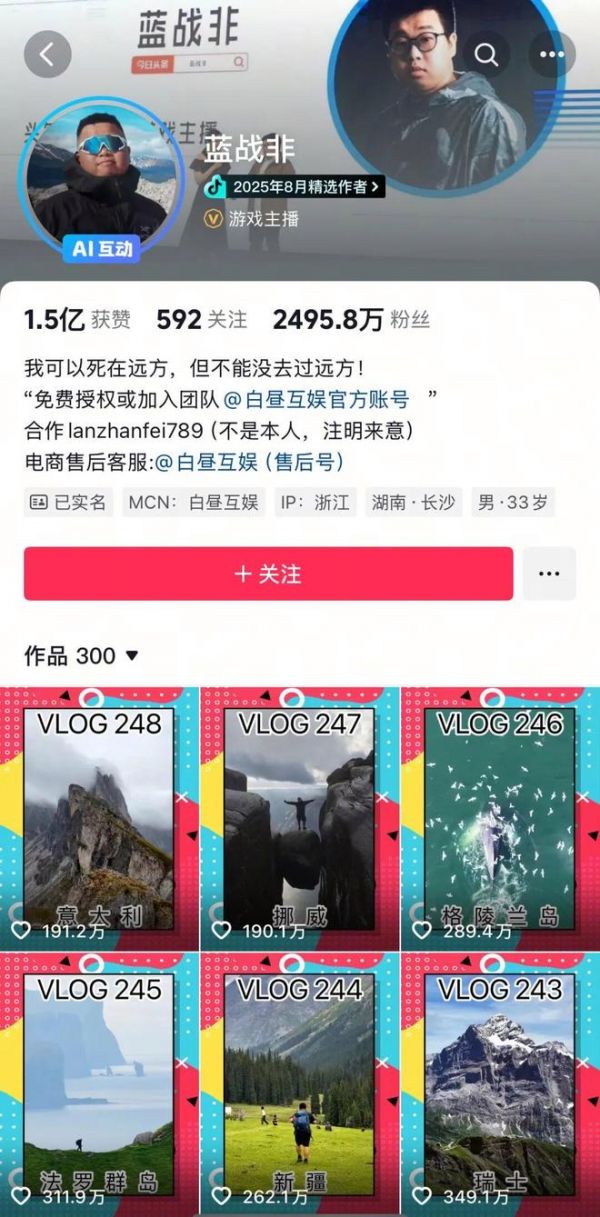蓝战非账号 图源:抖音