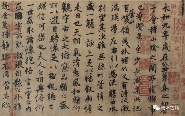 王羲之的《兰亭集序》不论从其文学意义还是艺术价值来看,都早已被奉为经典。作为一篇书法作品,其笔势“飘若浮云,矫若惊龙”,被誉为天下行书第一,历朝历代都有许多追摹者。据传唐太宗曾爱不释手,甚至将其带进了昭陵。