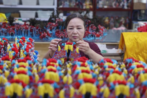 在位于一层的工作区,一组组正在制作中的以穆桂英为原型的绢人如同一位位女英雄,英姿飒爽。在唐燕的手中,这些“中国娃娃”不仅保留着北京绢人的传统手工技艺,而且实现创新发展,当一系列高科技携手百年传统手艺,北京绢人被赋予新的生命,拓宽了市场,也走出了中国,向海外观众娓娓讲述中国文化故事。