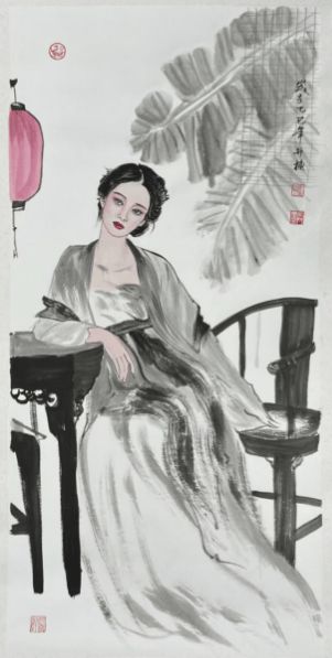灯影蕉窗藏幽意——赏国家一级美术师陈升栋国画《闺中》
