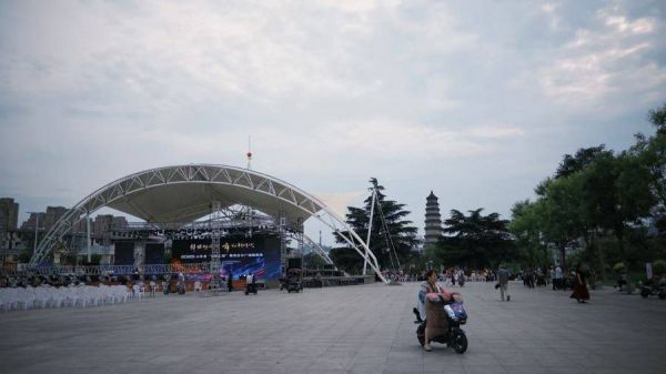 傍晚记者离开博物馆时,归巢的鸟儿在绕着龙泉塔飞,龙泉广场上已经搭起了夜间用的舞台,人来人往,复述着滕地绵延不息的生命力。
