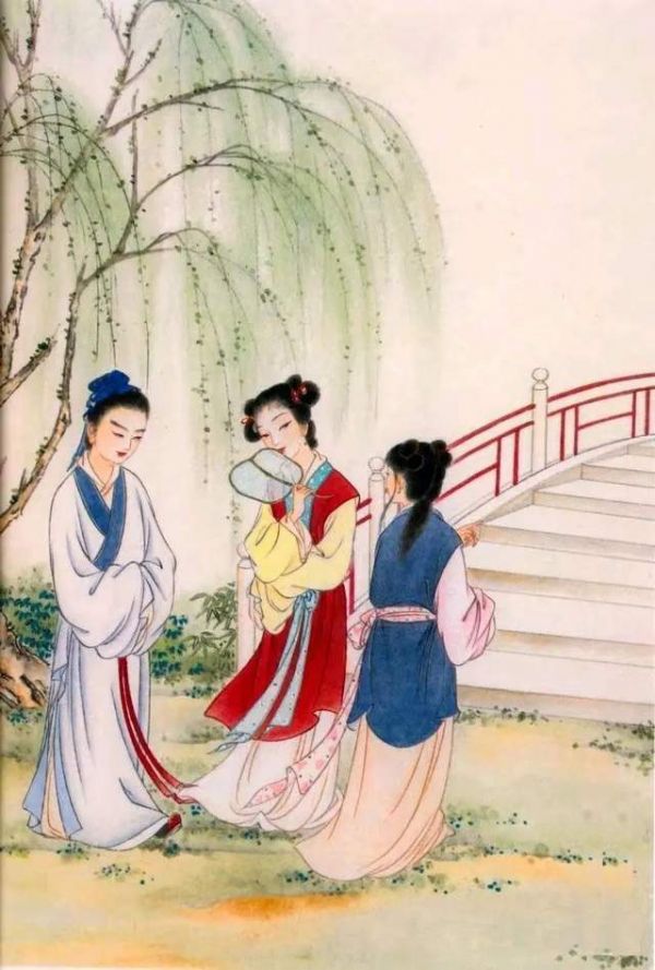 01花神节那天,眼见黛玉还没过来,薛宝钗自告奋勇的要去找黛玉,谁知刚好宝玉进了潇湘馆,宝钗想了一下转头走了。