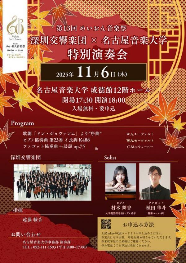尤为值得一提的是,在名古屋站,深交将与名古屋音乐大学举办一场特别的合作音乐会,由上海音乐学院作曲指挥系日本籍学生远藤绫音指挥,携手名古屋音乐大学的青年钢琴家村木舞香与大管演奏家植田隼斗,共同演绎莫扎特的歌剧《唐·乔万尼》序曲、《A大调第二十三钢琴协奏曲》以及韦伯的《F大调大管协奏曲》。这一安排不仅丰富了巡演的形式,更强化了此次巡演在艺术教育交流与未来产业合作层面的延伸价值。