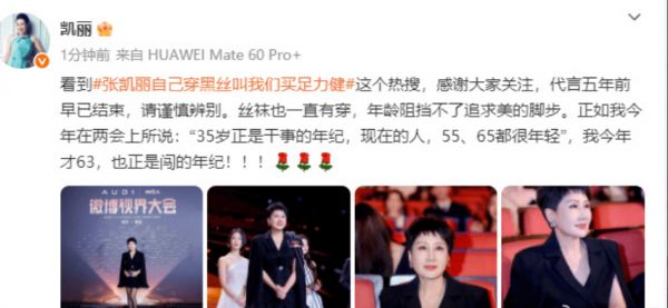 张凯丽回应63岁穿黑色丝袜:年龄阻止不了追求美的脚步