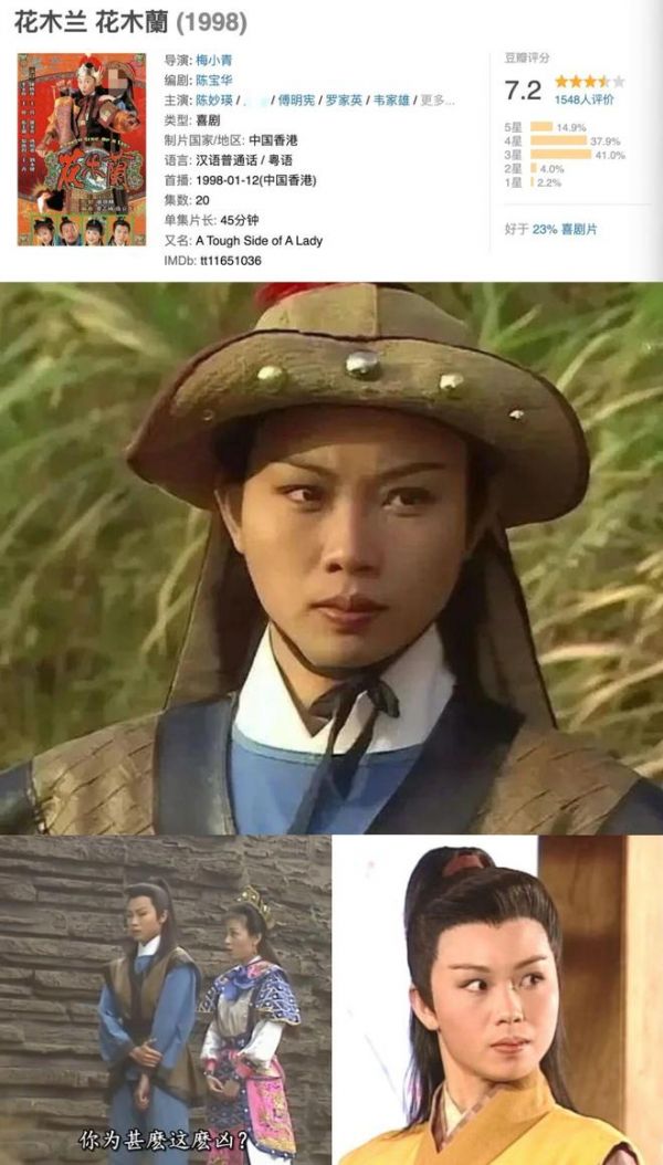 2、《花木兰》。喜剧和笑料加满的人物剧。陈妙瑛版花木兰,这头套、这鬓角、这眉眼……妆造完全和剧里男演员一样,连走路姿势和说话的腔调,也跟男的一样粗犷霸道,拒绝喜欢自己的姑娘时,甚至拿捏出“渣木兰”的神韵。这样一个姑娘融入行军队伍,还真的是“安能辨我是雄雌”!