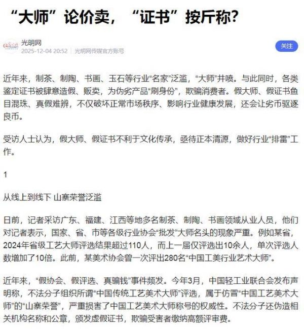 追根溯源,“大师”称谓的普遍贬值,其深层土壤在于社会转型期某种文化自信的缺失与价值标准的悬浮。当传统的精神坐标系发生位移,而新的、坚实的内生性标准尚未完全确立之时,公众与市场便会表现出对外部标签的过度依赖。于是,“专家”、“老师”、“大师”等词汇被抽空实质,退化为一种社交润滑剂或商业噱头。这种对“最高级形容词”的挥霍,本质上是一种文化心理上的补偿行为,用以掩饰内在的价值不确定性与对卓越认知的茫然。