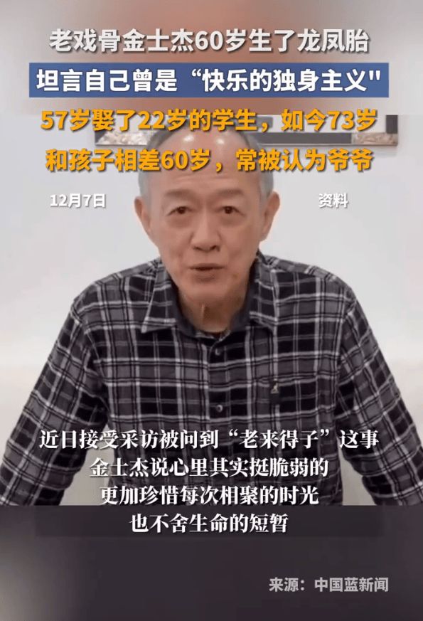 值得一提的是,金士杰57岁时迎娶了小35岁的学生,如今73岁的他与子女年龄差高达60岁,外出带娃还常常被路人误认成爷爷。他表示:“好多次他们同学都会误会,这是爷爷来了。只要不误认为是祖母就好了,你爱怎么以为就怎么以为,我活我的。重点是孩子不要觉得疙瘩。”