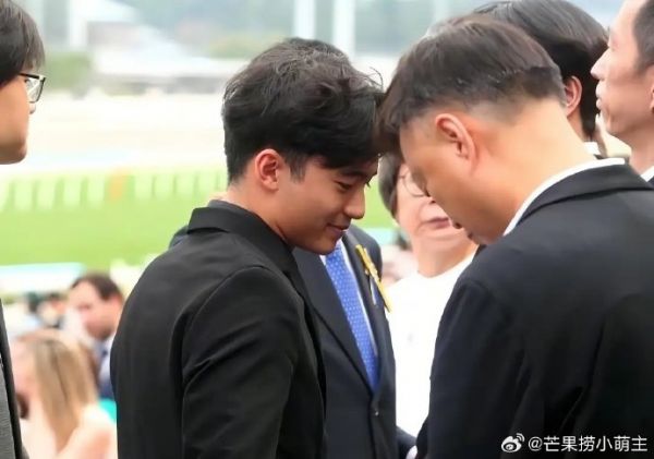 #谢霆锋大儿子穿西装现身马场##谢霆锋大儿子穿西装观看赛马# 谢霆锋大儿子穿西装现身马场,Lucas穿了一身黑色西装,剪短了头发模样很像爸爸。