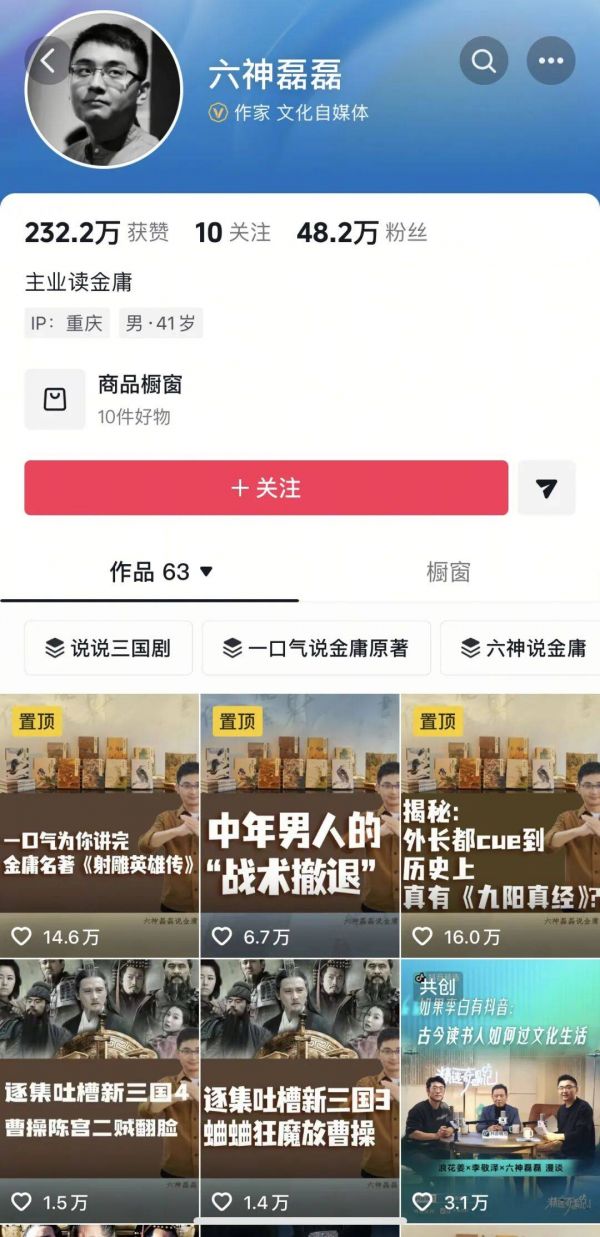 同时记者发现,“六神磊磊”相关视频号仍可正常关注,微博、抖音也可正常关注。当事人的另一个微信公众号“六神磊磊读唐诗”也显示正常,其视频号“六神磊磊说”也可正常搜索关注。