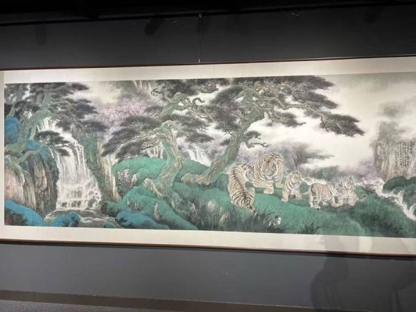 展览现场,冯大中一系列以虎为主题的画作都是其历年画虎的经典之作,牵引了很多观众的视线。画中的虎或登高吟啸,或回眸露出温情。全身细致入微的刻画加上严谨写实的造型这些老虎焕然一新。冯大中坦言:“我都是从人性角度去表现老虎其美、其凶、其情。”另一些出现在展览中的山水画,则是冯大中的近作,写胸中丘壑,笔下西山。“在审美取向和追求上,我还是崇尚古典美。我在现实生活中汲取素材,试图表现这样的古典美。”冯大中说。
