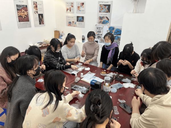 李湛说,前期实地考察沈阳残疾人非遗文创工作,就辽绣技艺传承与残疾人技能培训、就业创业达成了合作意向,今天来到点翠制作工作室,切身感到残疾人非遗文创发展态势令人欣喜,发展潜力巨大,双方拥有可密切、深远的合作空间。他说,鲁迅美术学院染织服装设计学院非遗文化底蕴深厚,师资力量雄厚,愿意在沈阳残疾人非遗文创产业化发展、品牌化营销、链条式推进中发挥积极助力作用。双方还就开发中医药文创产品、中医药夜市展销,以及中医药与辽绣制作、服装配饰等应用场景进行了深入探讨交流。