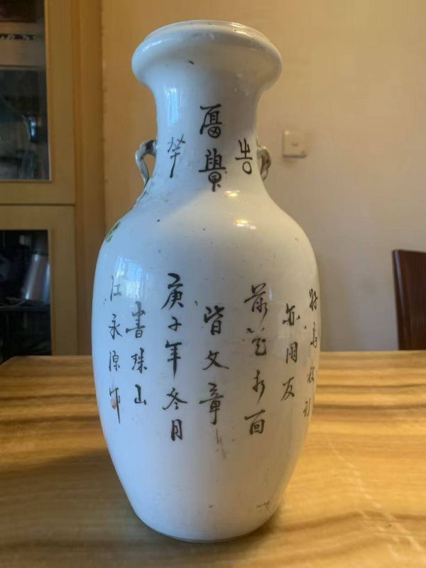 清末御窑厂的衰落,让官窑工艺流入民间,文人画师得以用御窑胎土施展笔墨,催生了“文人瓷画”的黄金时代;而绛彩技法的流行,又标志着瓷绘从“宫廷制式”向“文人审美”的转向——此瓶既保留了御窑的胎质工艺,又承载了文人画的笔墨精神,是“官窑余脉与文人新风”碰撞的产物。