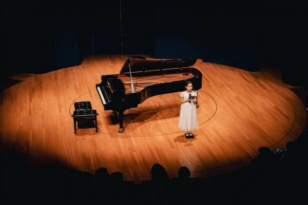 演出中,不同年龄段的学生们依次登台,展现出音乐学习路上的成长足迹。五岁的韩曜安以童真演绎布格缪勒《叙事曲》;陈哲成在拜厄练习曲中展露扎实功底,并演奏小提琴与陈老师的钢琴合作呈现维瓦尔第《a小调协奏曲》;蔡逸宸则穿梭于柴可夫斯基《船歌》的诗意与尤曼斯《鸳鸯茶》的轻快之间,展现出音乐理解的广度。