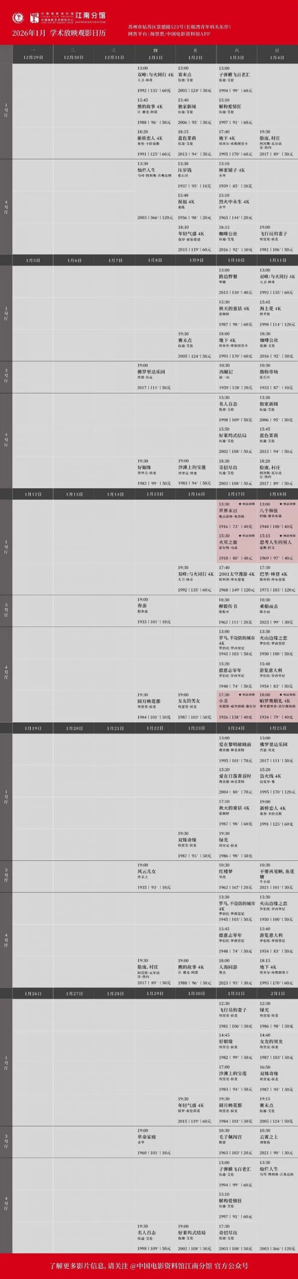 苏州今日放映|2026.1.3 周六