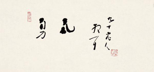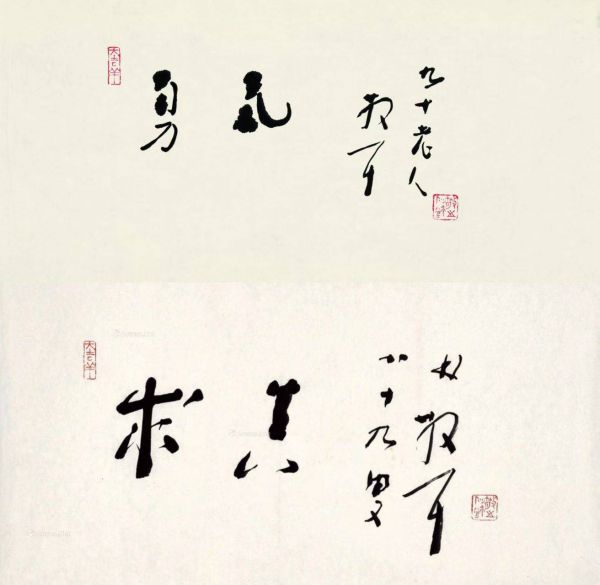 “勇气”二字也是两平尺,刚刚拍30万落槌,加佣金34.5成交,为什么“勇气”更贵?不仅因年龄长一岁,九十岁提笔写“勇气”模糊的视力,颤抖的双手,超越完美的“不完美”方是艺术最动人的心跳。