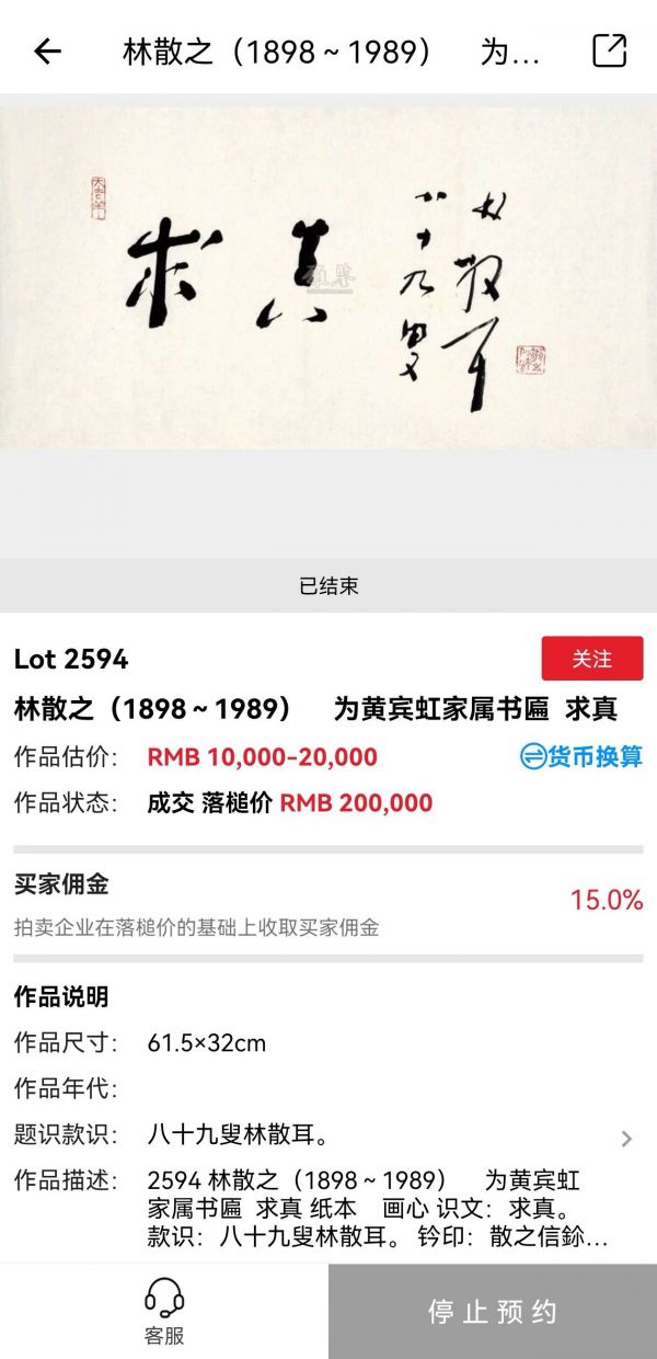 仅仅两个字,两平尺,前几天拍卖会上他89岁所写的“求真”黄宾虹家属专场释出成交价23万。