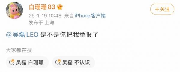 #吴磊 白珊珊#吴磊再不回应都要莫名其妙被实锤了…吴磊 不认识…女方那边从头到尾只是掀起舆/论,艾特吴磊那条也就问你是不是举报了我?没有任何直接指向说她说的是演员吴磊…如果真的有料早就发了,不至于这样玩文字游戏。网友真的很容易自以为聪明…