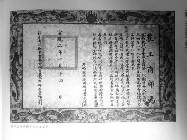 南洋劝业会颁发的金奖奖凭