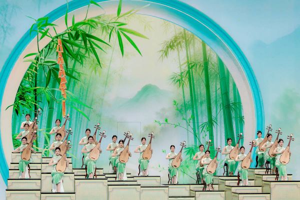 主会场节目注重传统与现代的融合,通过创新形式赋予国风文化更强的互动性与时代感染力。其中,歌咏创意秀《贺花神》以花卉为线索,结合AI影像与舞台扩展技术,营造月月有花、景景不同的视听意境,演绎四季流转间的生命之美。舞蹈《丝路古韵》特邀清华大学美术学院教授常沙娜担任艺术顾问,将千年壁画艺术搬上舞台,以翩跹舞姿引领观众重走丝绸之路。歌曲《小家年年》融入苏州评弹的细腻唱腔,在吴语韵调中诉说寻常家庭的温暖团圆与家国同兴的美好愿景。戏曲环节汇聚京剧、评剧、越剧、粤剧、豫剧等多剧种精华,老中青幼四代表演者同台,共展梨园春色。